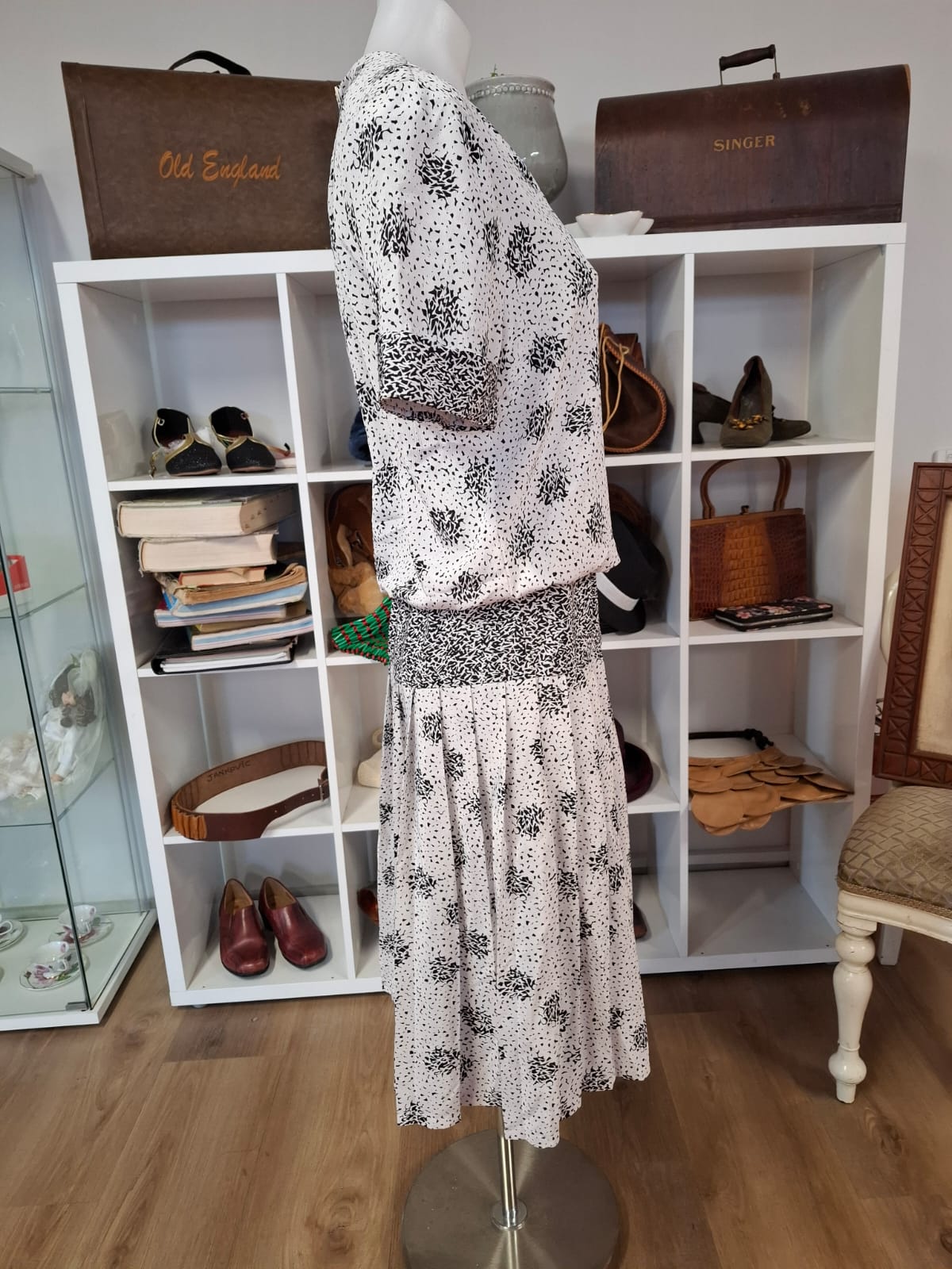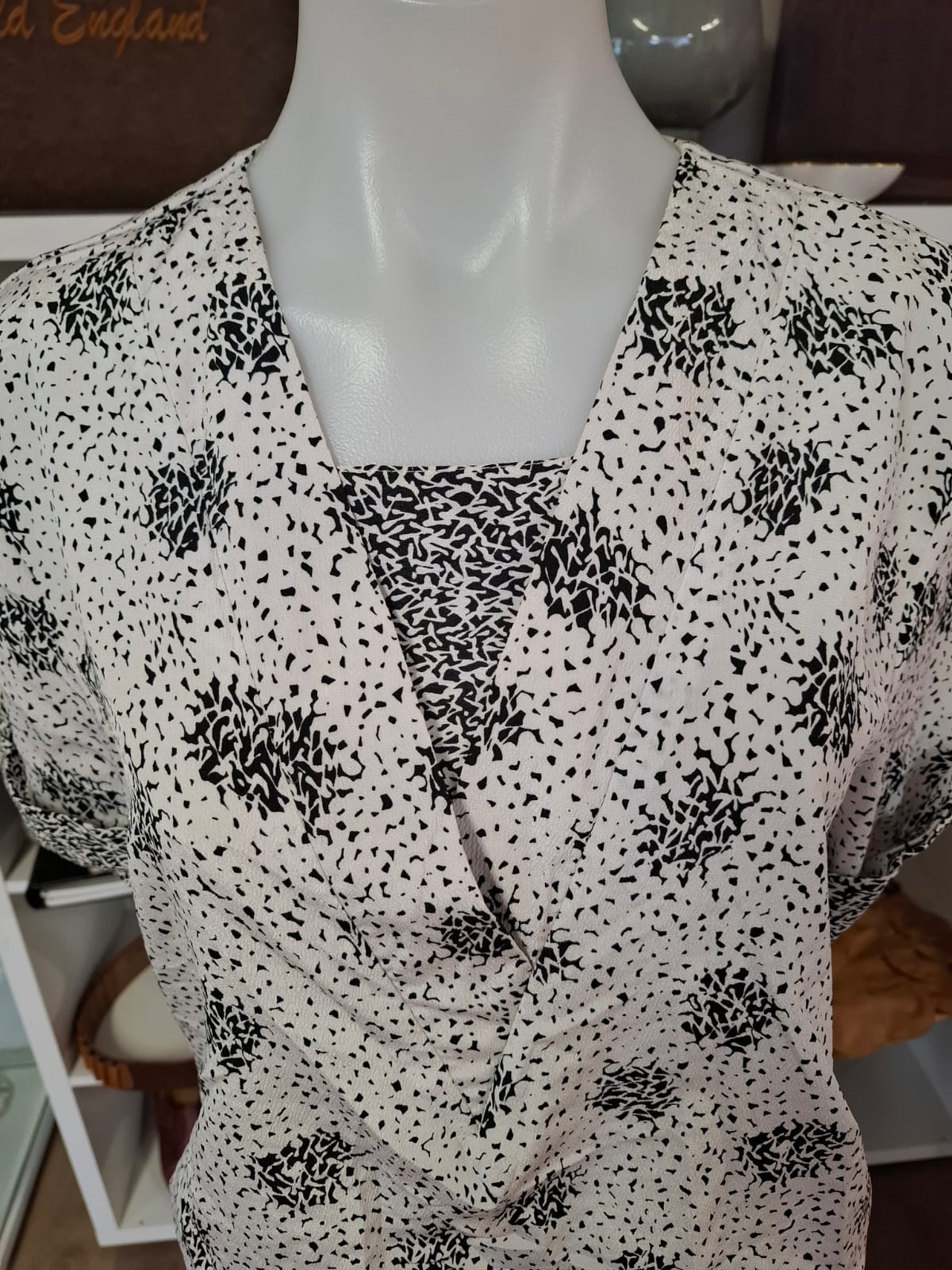 ARC Sydney 80's Short-sleeved pleated skirt with a stretchable waist. V-neck and non-stretch.