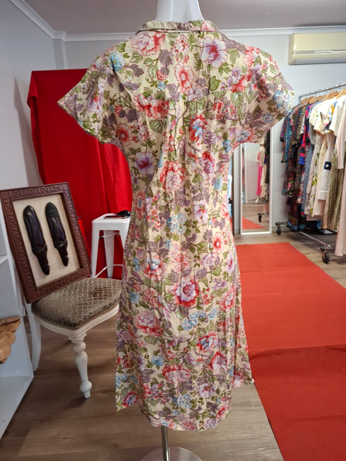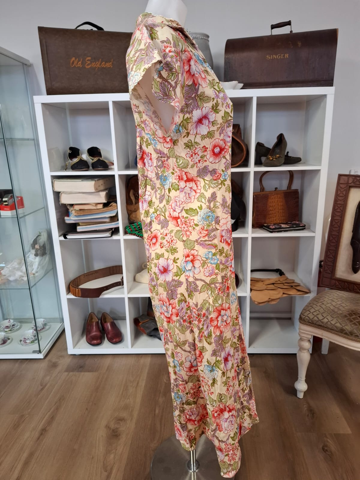 To maintain its shape and color, we recommend gentle hand washing or dry cleaning and avoiding tumble drying or bleaching. Proper care will preserve the garment’s quality and vintage charm.